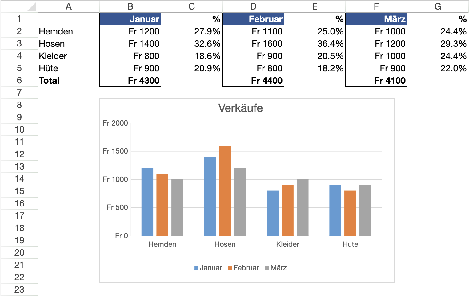 Die Grafik wird anhand der Spalten B, D und F erstellt.