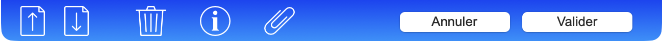 - Les deux premiers boutons (flèche vers le haut et vers le bas) vous permettent de passer à la fiche précédente, respectivement la fiche suivante. En mode Modification, un clic sur l'un de ces boutons valide les éventuelles modifications apportées à la fiche avant de passer à la fiche précédente ou suivante.