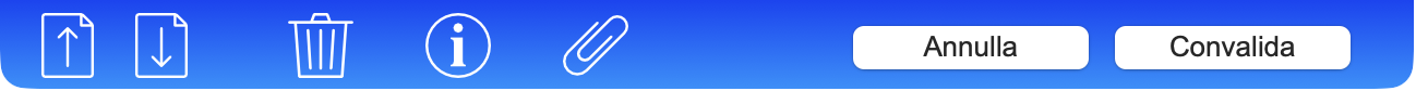 - Il settimo pulsante (Convalida) chiude la scheda dopo averla salvata nel database. In modalità Consultazione, questo pulsante si chiama Modifica e consente di accedere alla modalità di modifica della scheda.